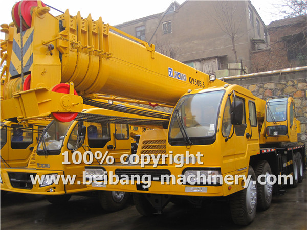 This week one truck crane QY50B.5 ready to dispatch from factory. This is the economic model with 50T truck crane, half cabin with mechanical operation.