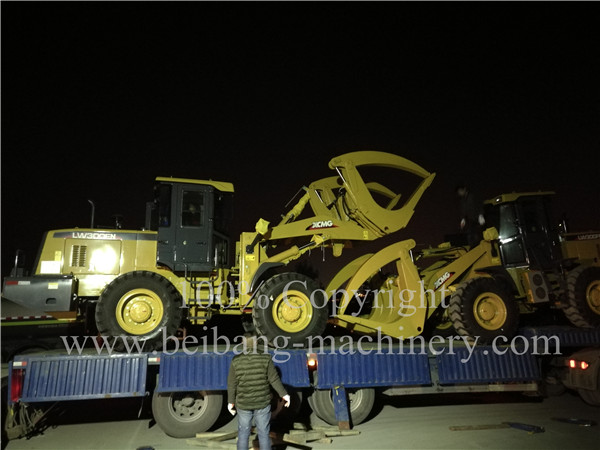 on 14th of March 2017, Beibang Machinery has delivered 2 pcs XCMG  LW500FN, 2 pcs XCMG LW300FN wheel loader with wood grab to Africa market